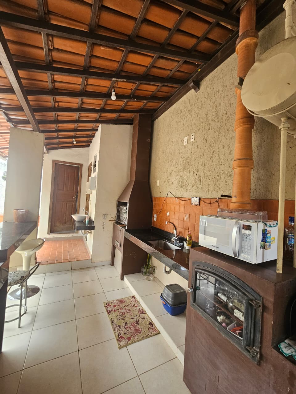 ✅ Área gourmet com churrasqueira e fogão à lenha