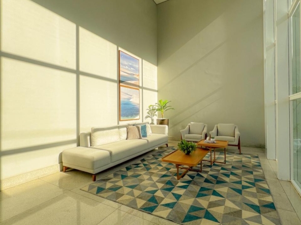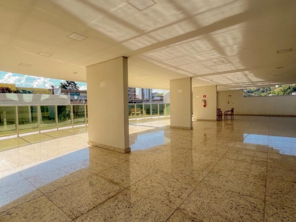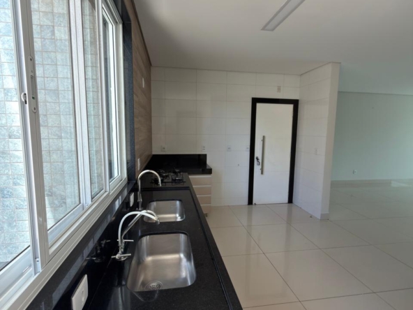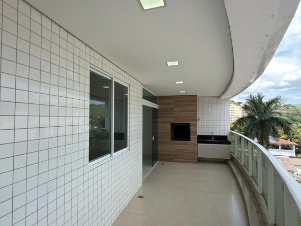 ✅ Sacada ampla com área gourmet, churrasqueira a carvão e pia com planejados.