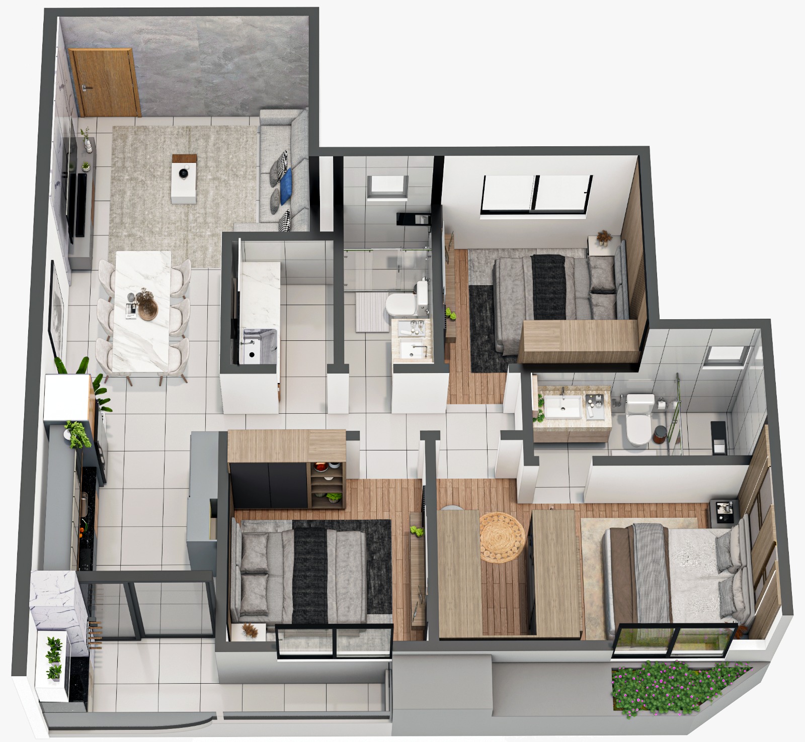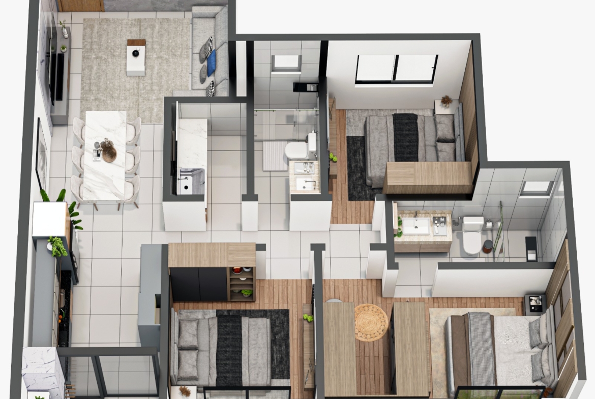✅ Apartamentos de 3 quartos sendo 1 suíte;